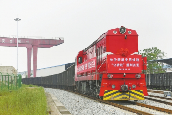 長(zhǎng)沙新港“公轉(zhuǎn)鐵”整列首發(fā)                             湖南日?qǐng)?bào)4月18日訊(全媒體記者 于淼 彭可心 通訊員 洪琳 金添毅)4月18日,伴隨著聲聲汽笛,省港航水利集團(tuán)所屬城陵磯港口集團(tuán)長(zhǎng)沙新港專用鐵路完成“公轉(zhuǎn)鐵”整列發(fā)送業(yè)務(wù)首發(fā),打破去年專用鐵路開通以來只有鐵路到達(dá)的業(yè)務(wù)模式,標(biāo)志長(zhǎng)沙新港專用鐵路“公轉(zhuǎn)鐵”發(fā)送業(yè)務(wù)正式開通。   鐵水聯(lián)運(yùn)業(yè)務(wù)分為到達(dá)業(yè)務(wù)和發(fā)送業(yè)務(wù),長(zhǎng)沙新港專用鐵路自2023年6月26日試運(yùn)行以來,截至目前共完成8762車,47.59萬噸到達(dá)業(yè)務(wù)作業(yè)。本次為發(fā)送業(yè)務(wù)整列首發(fā)。   為滿足客戶的運(yùn)輸服務(wù)需求,長(zhǎng)沙新港與長(zhǎng)沙鐵路物流中心緊密合作,將各類貨物運(yùn)輸全程進(jìn)行細(xì)化分解,不斷優(yōu)化作業(yè)方案。3月21日,長(zhǎng)沙新港專用鐵路獲廣鐵集團(tuán)多種貨物發(fā)送資質(zhì),緊鑼密鼓開展“公轉(zhuǎn)鐵”發(fā)送業(yè)務(wù)。   長(zhǎng)沙新港公司相關(guān)負(fù)責(zé)人表示,“公轉(zhuǎn)鐵”發(fā)送業(yè)務(wù)的開通,是長(zhǎng)沙新港積極響應(yīng)國(guó)家“公轉(zhuǎn)鐵”“公轉(zhuǎn)水”政策、落實(shí)完善區(qū)域綜合交通樞紐、大力開展鐵水聯(lián)運(yùn)業(yè)務(wù)的具體行動(dòng)。長(zhǎng)沙新港將持續(xù)推進(jìn)“公轉(zhuǎn)鐵”,充分發(fā)揮區(qū)位優(yōu)勢(shì),將港口經(jīng)濟(jì)腹地從長(zhǎng)株潭地區(qū)向華北、華南和西南地區(qū)延伸,進(jìn)一步降低社會(huì)綜合物流成本,帶動(dòng)開發(fā)長(zhǎng)沙地區(qū)市場(chǎng),培育并發(fā)展港口新質(zhì)生產(chǎn)力。                                                                                                                                 稿件轉(zhuǎn)自《湖南日?qǐng)?bào)》4月19日頭版報(bào)道     |