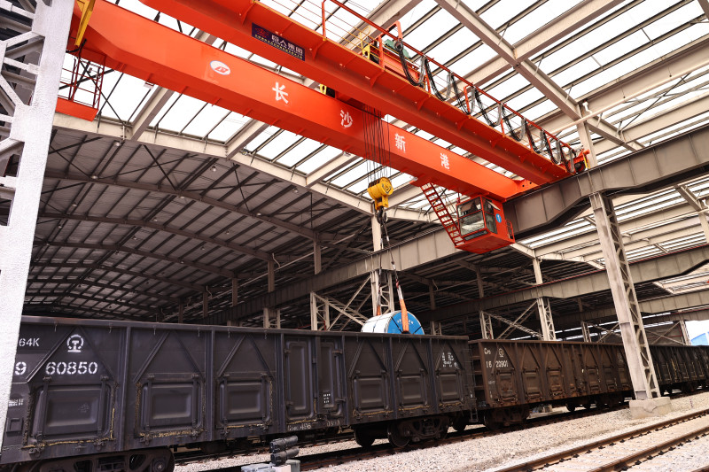 長沙新港專用鐵路正在裝卸作業(yè)。 均為長沙晚報全媒體記者 王志偉 通訊員 金添毅 攝 2月4日,一列由婁底漣鋼生產(chǎn)的工業(yè)鋼材共80車經(jīng)鐵路運輸至長沙新港,從碼頭裝船發(fā)運至上海,當天運量達到4500噸。2023年,長沙首條疏港專用鐵路在長沙新港正式通車運營,實現(xiàn)了港口鐵路與京廣線國鐵干線的無縫銜接,打通了長沙水鐵聯(lián)運“最后一公里”,多式聯(lián)運降低了企業(yè)運輸成本,深受市場歡迎。數(shù)據(jù)顯示,長沙新港專用鐵路運營至今,共到發(fā)車數(shù)超3.1萬車,貨物運量超186萬噸。