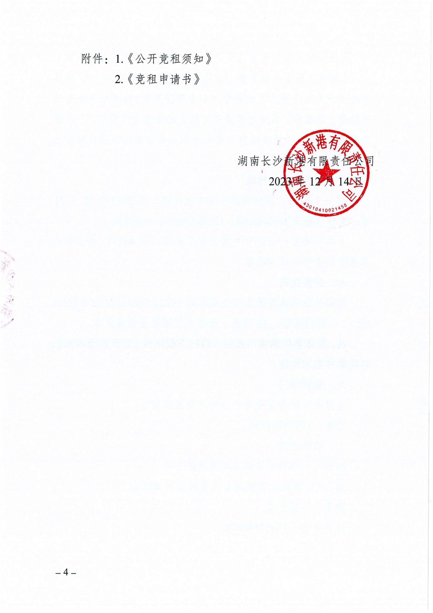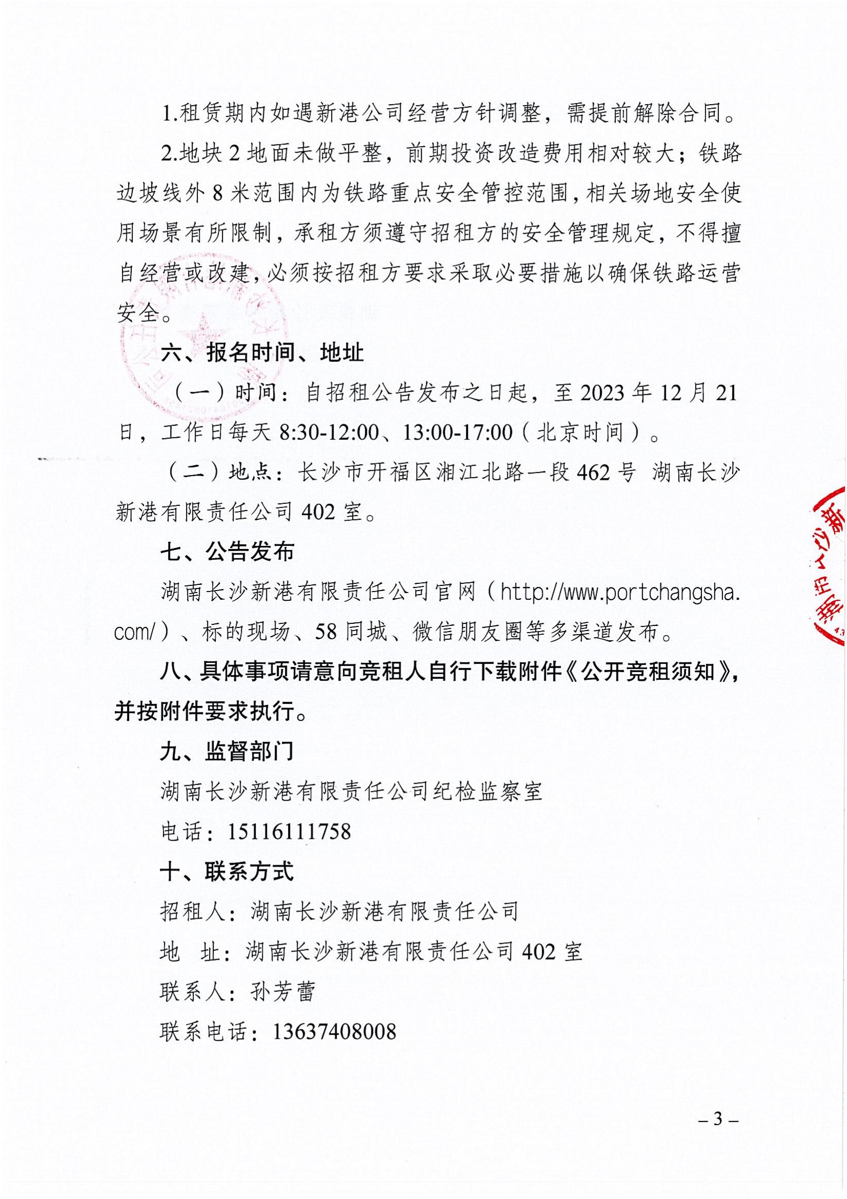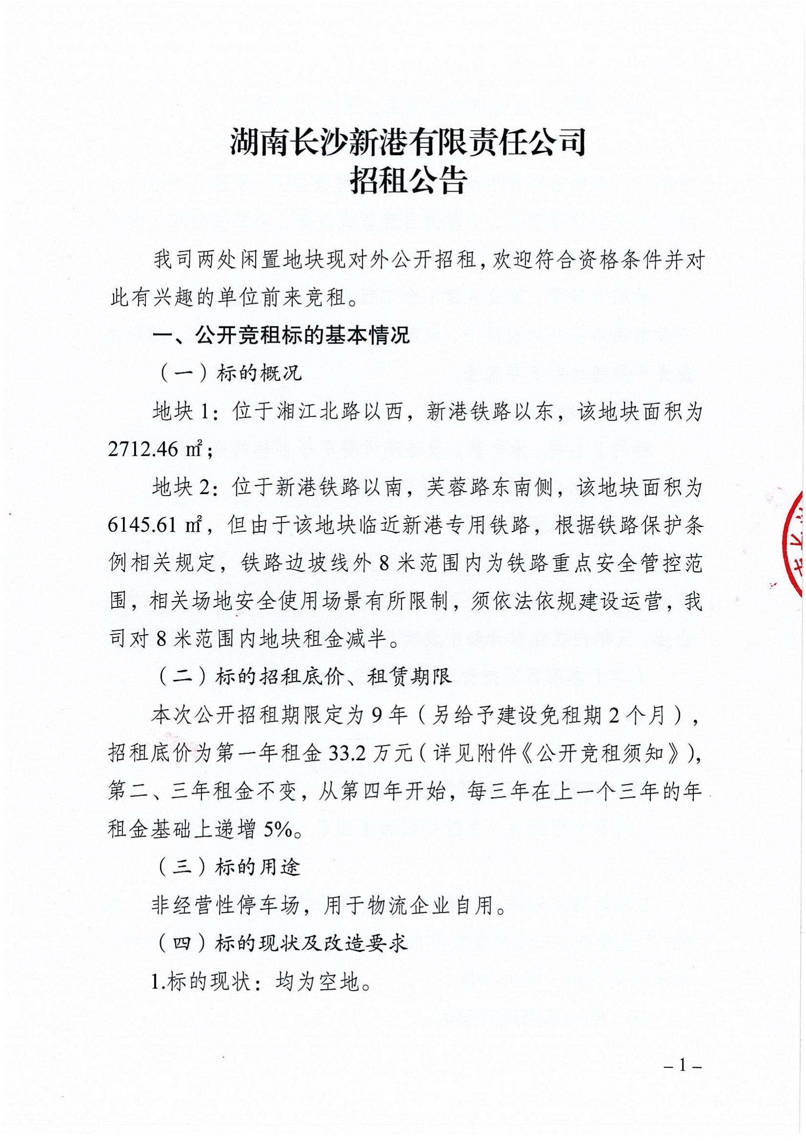 湖南長沙新港有限責任公司招租公告
