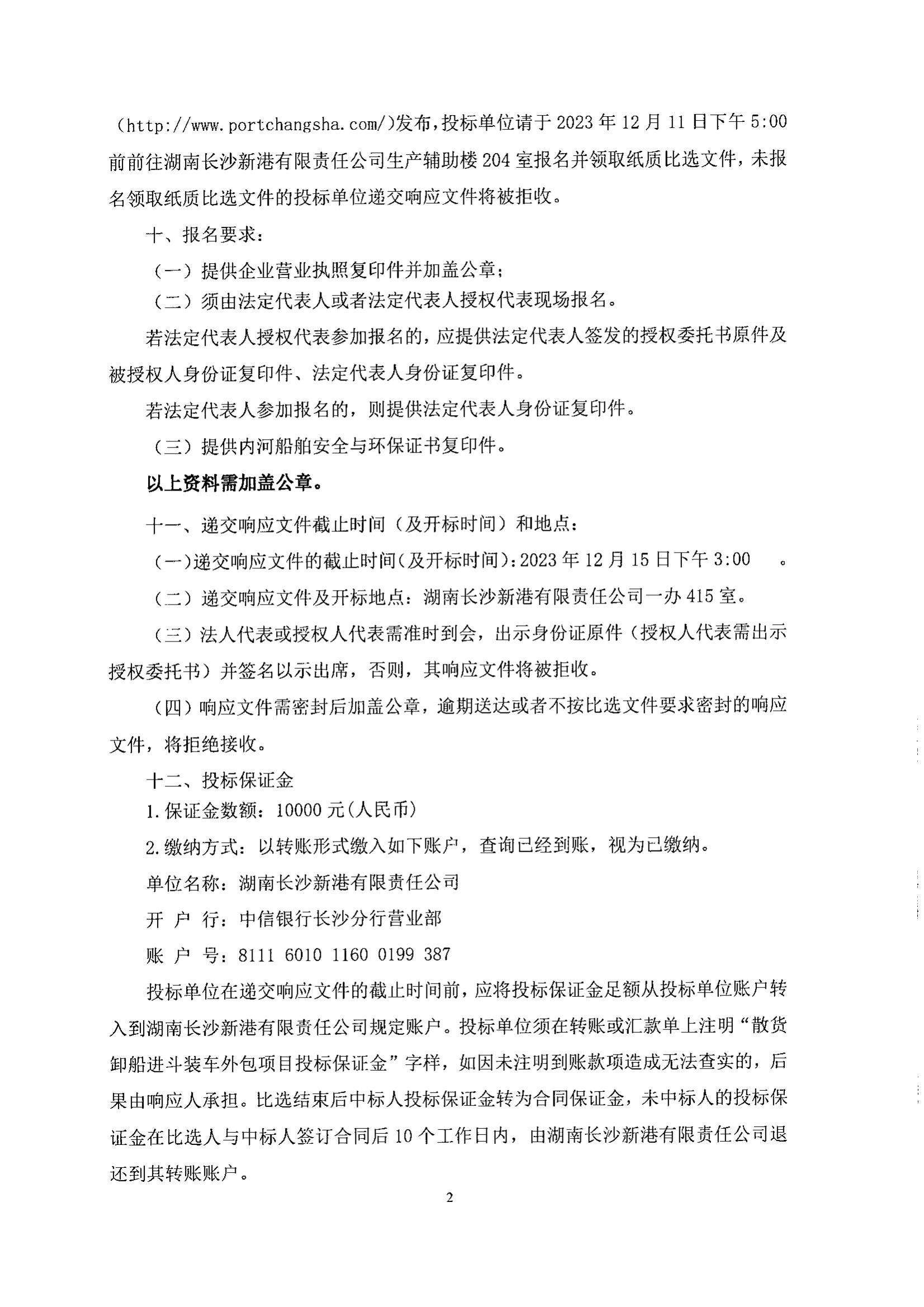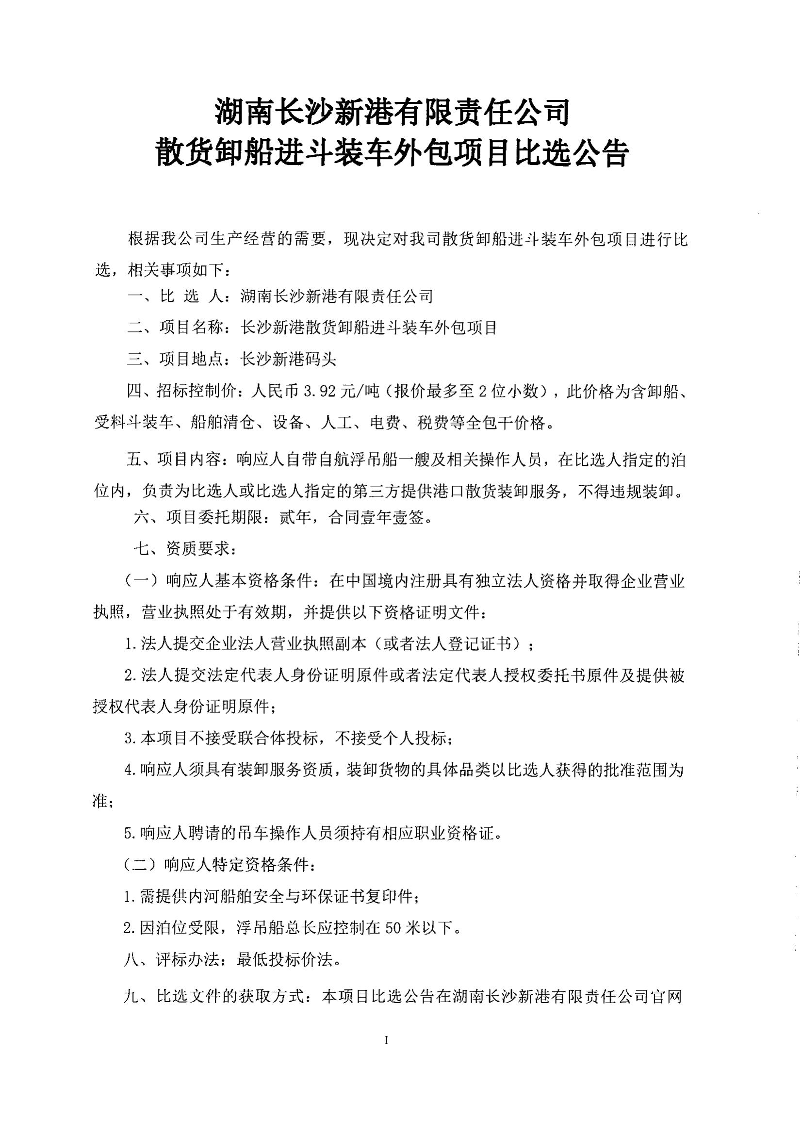 湖南長(zhǎng)沙新港有限責(zé)任公司散貨卸船進(jìn)斗裝車外包項(xiàng)目比選公告