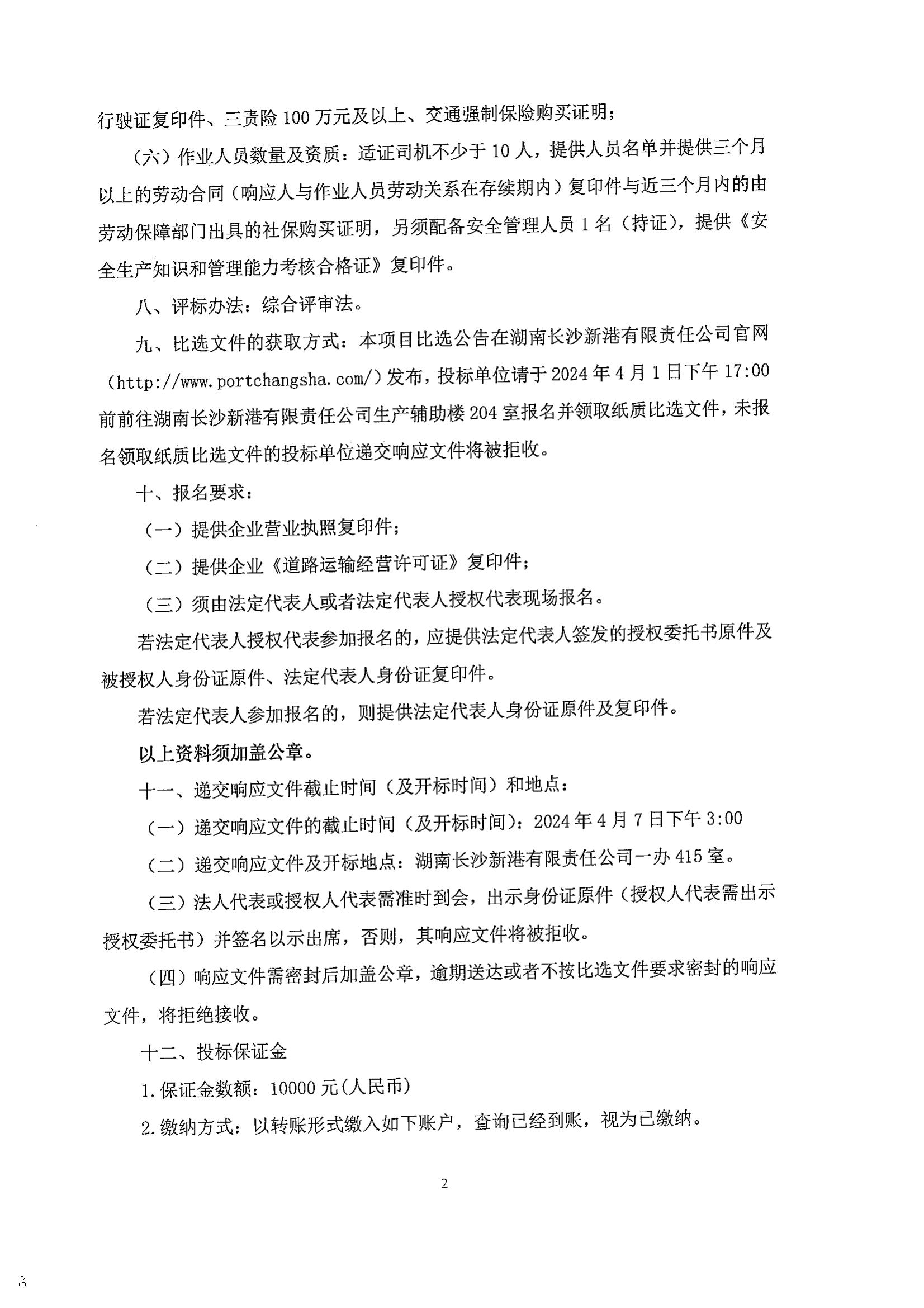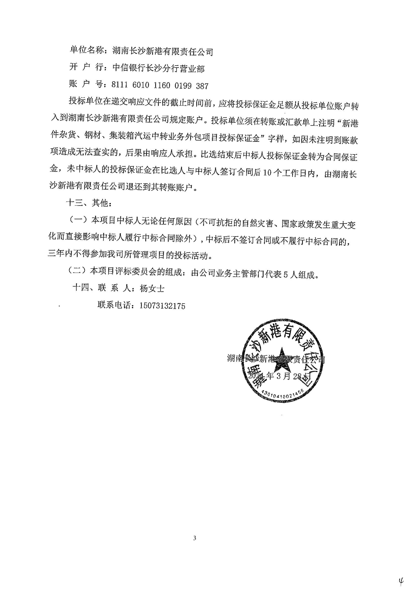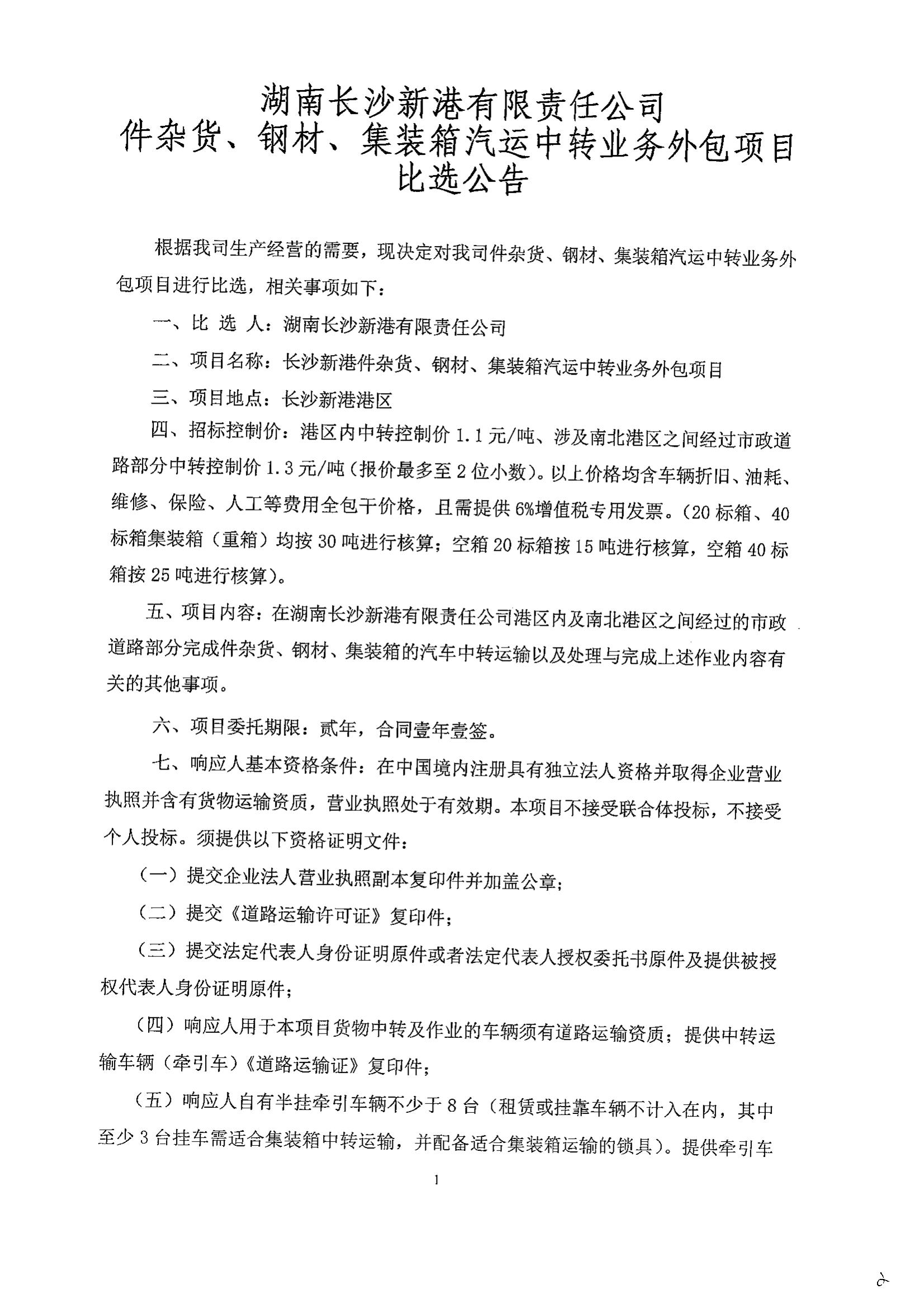 長沙新港件雜貨、鋼材、集裝箱汽運(yùn)中轉(zhuǎn)業(yè)務(wù)外包項(xiàng)目比選公告
