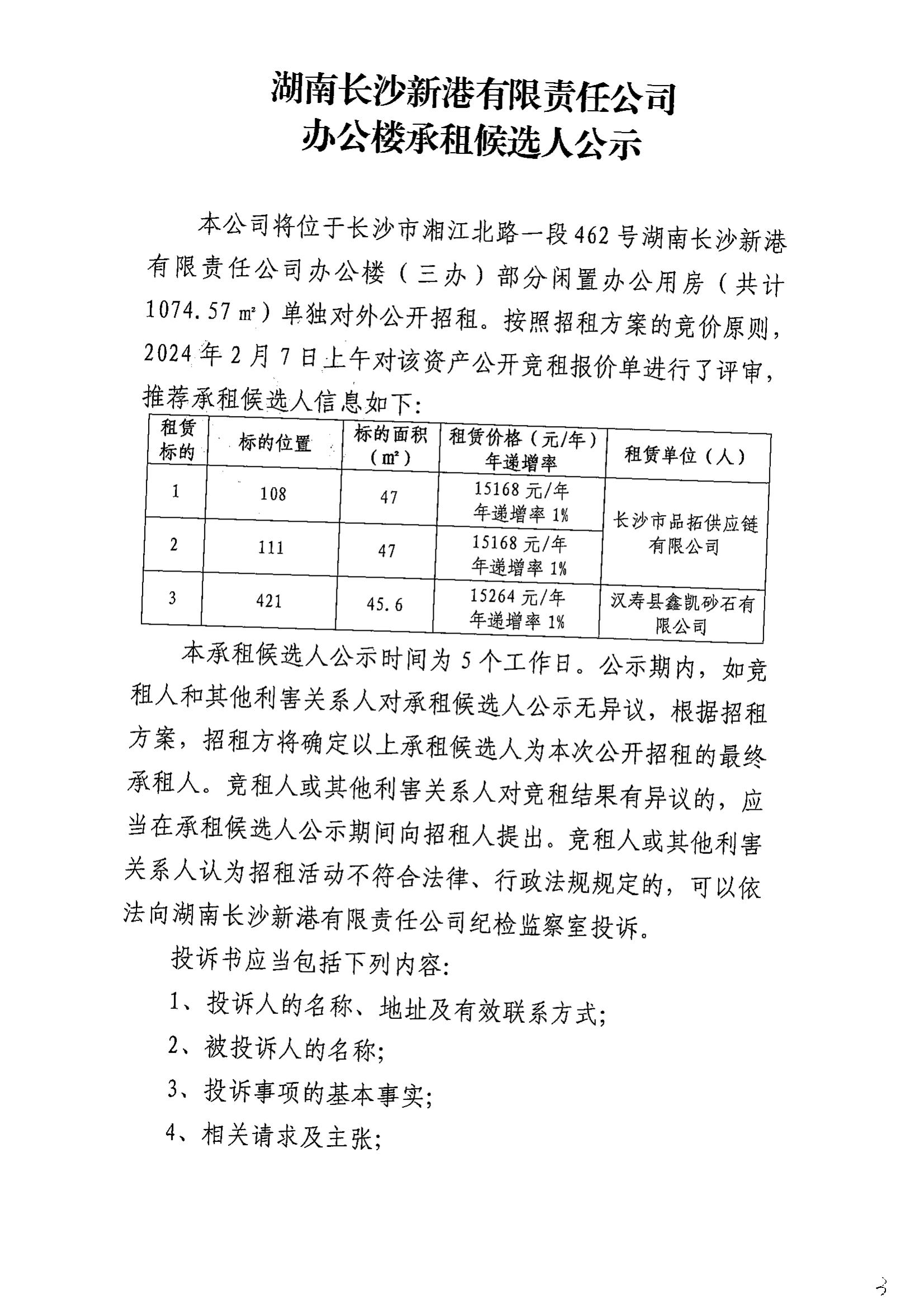 長沙新港辦公樓承租候選人公示(108/111/421)